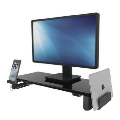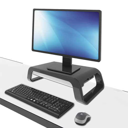 Raise the monitor screen to eye level relieving stress to the shoulders and neck